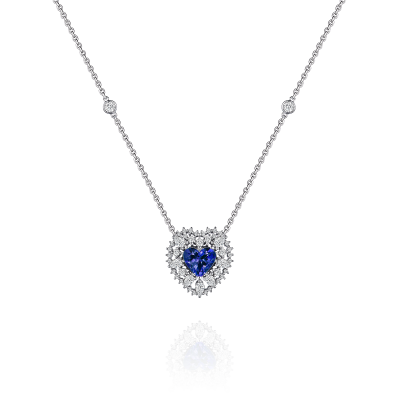 Tanzanite cut heart. Pear-cut and round-cut diamonds.