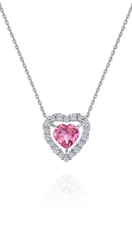 Tourmaline cut heart. Round-cut diamonds.