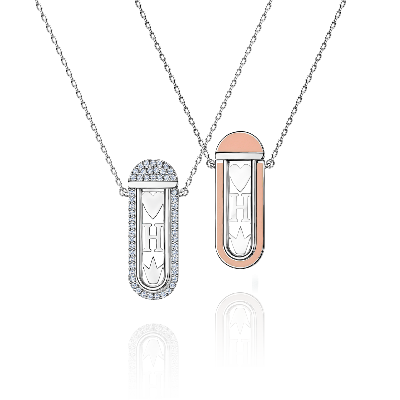 Transformer necklace with diamonds and enamel
