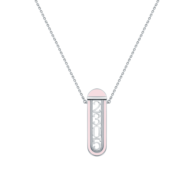 The capsule is made of white gold and sapphire crystal, framed by a gold rim with colored enamel, attached to a chain with three levels of length. You can simultaneously put 4 interchangeable gold numbers in the capsule, which serve as a symbol of something important and special. These may be dates associated with certain events or traditions of your family, with circumstances that have changed the course of your life. The set includes branded tweezers and 10 gold digits from 0 to 9, which can be easily changed independently in the capsule.