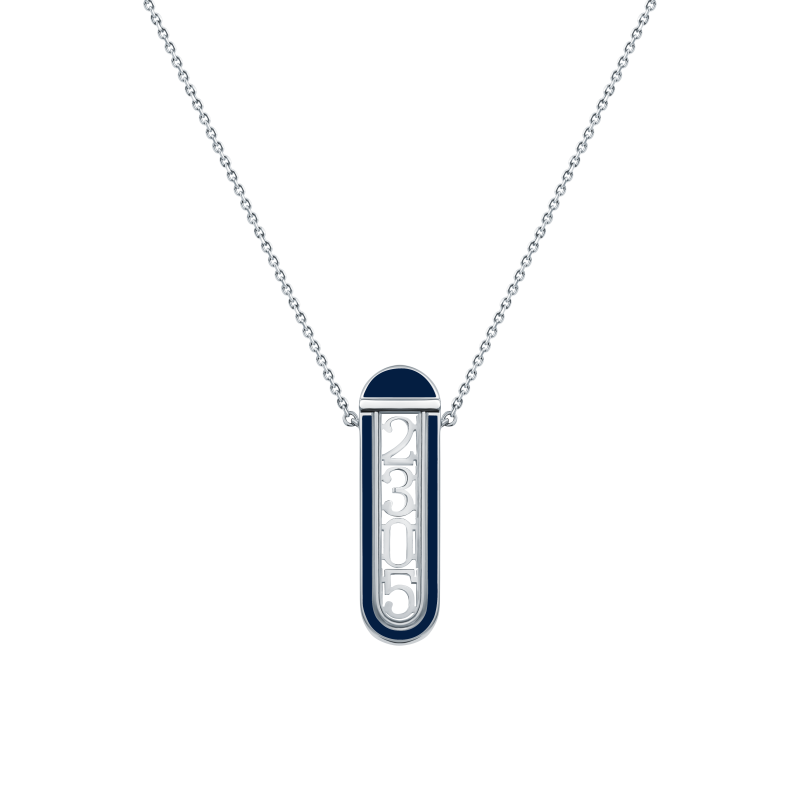 The capsule is made of white gold and sapphire crystal, framed by a gold rim with colored enamel, attached to a chain with three levels of length. You can simultaneously put 4 interchangeable gold numbers in the capsule, which serve as a symbol of something important and special. These may be dates associated with certain events or traditions of your family, with circumstances that have changed the course of your life. The set includes branded tweezers and 10 gold digits from 0 to 9, which can be easily changed independently in the capsule.