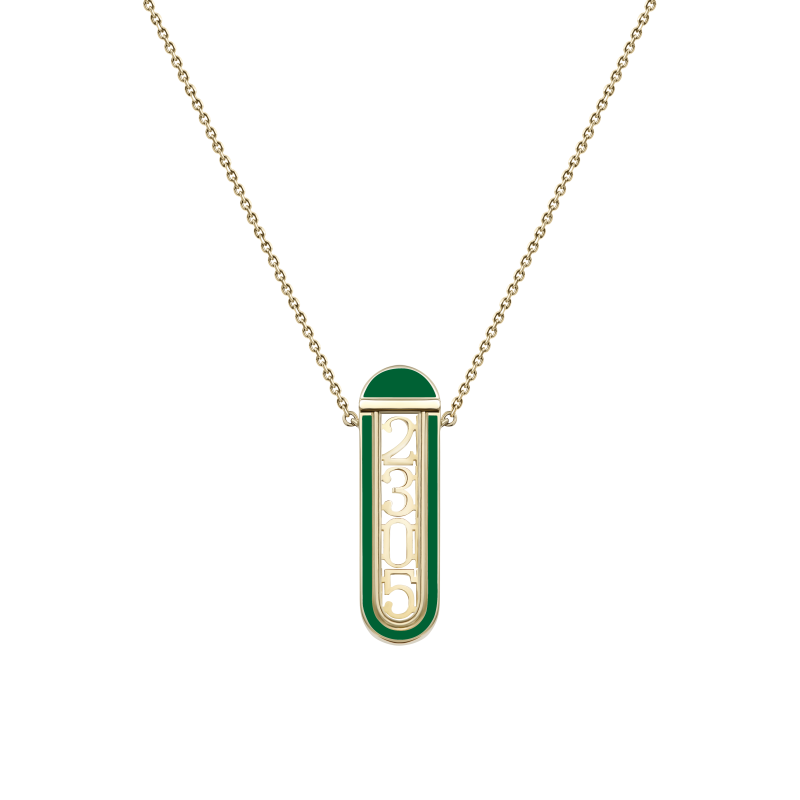 The capsule is made of yellow gold and sapphire crystal, framed by a gold rim with colored enamel, attached to a chain with three levels of length. You can simultaneously put 4 interchangeable gold numbers in the capsule, which serve as a symbol of something important and special. These may be dates associated with certain events or traditions of your family, with circumstances that have changed the course of your life. The set includes branded tweezers and 10 gold digits from 0 to 9, which can be easily changed independently in the capsule.