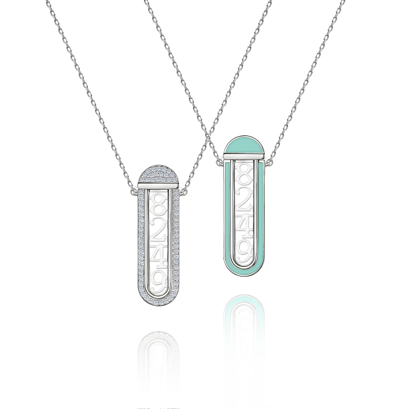 Transformer necklace with diamonds and enamel