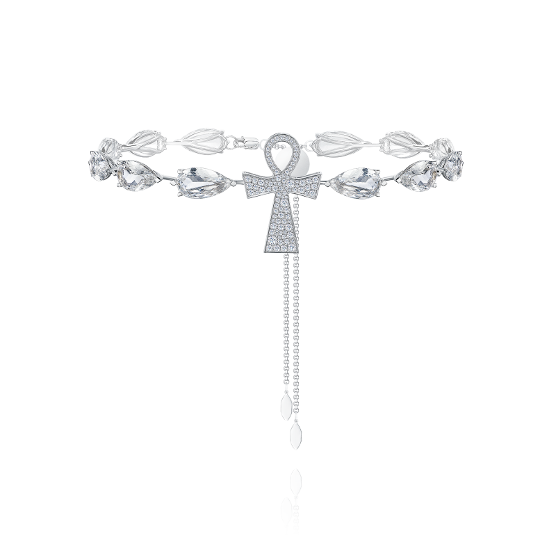 Necklace with rhinestone and diamonds