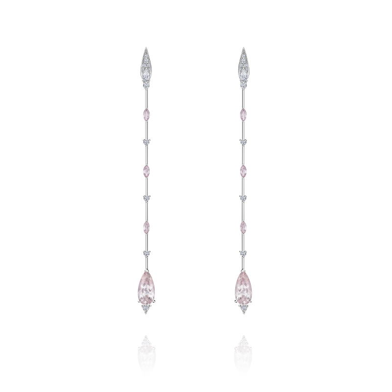 Pear-cut morganites. Pink marquis-cut sapphires. Pear-cut and round-cut diamonds.