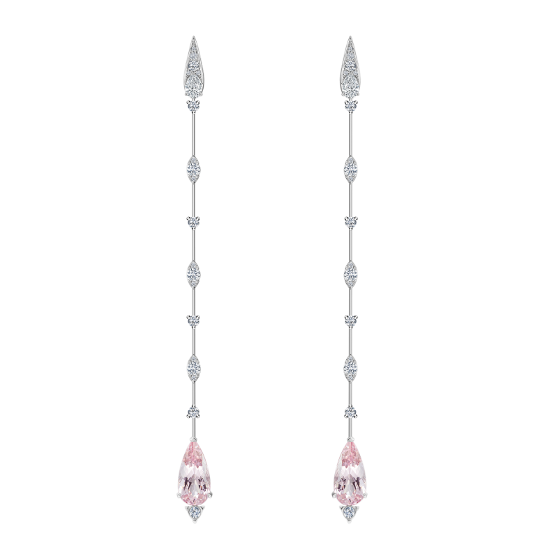 Pear-cut morganites. Pear-cut and round-cut diamonds.