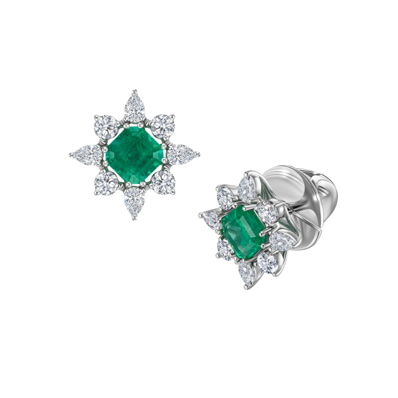 Stud earrings with emeralds and diamonds